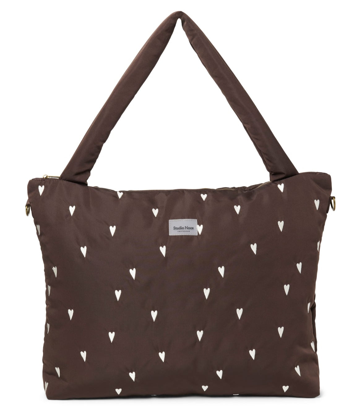 De Studio Noos puffy diaper bag maakt het leven als ouder net iets makkelijker! De bruine luiertas met hartjes is niet alleen stijlvol, maar ook super praktisch. Dankzij de stevige ritssluiting kun je al je spullen veilig opbergen, terwijl de verschillende binnenvakken je helpen je dagelijkse benodigdheden te organiseren.