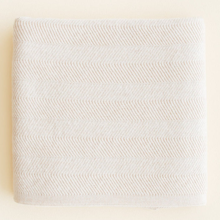 HVID deken Freddie is gebreid in een soepele rib knit, de cream deken is zacht en warm en gemaakt van 100% merino wol. De deken heeft een visgraat patroon met een schulprand en een ribrandje aan de lange zijde.