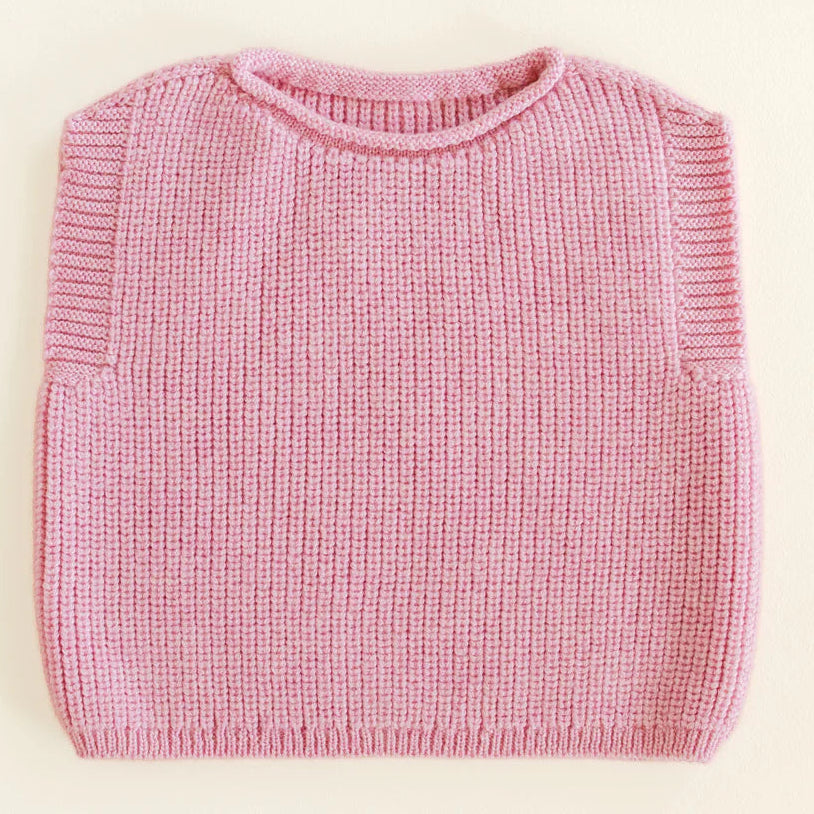 Spencer Harvey houdt kleintje lekker warm, het wollen roze vest is naadloos in één stuk gebreid, wat het erg comfortabel maakt voor kindjes.