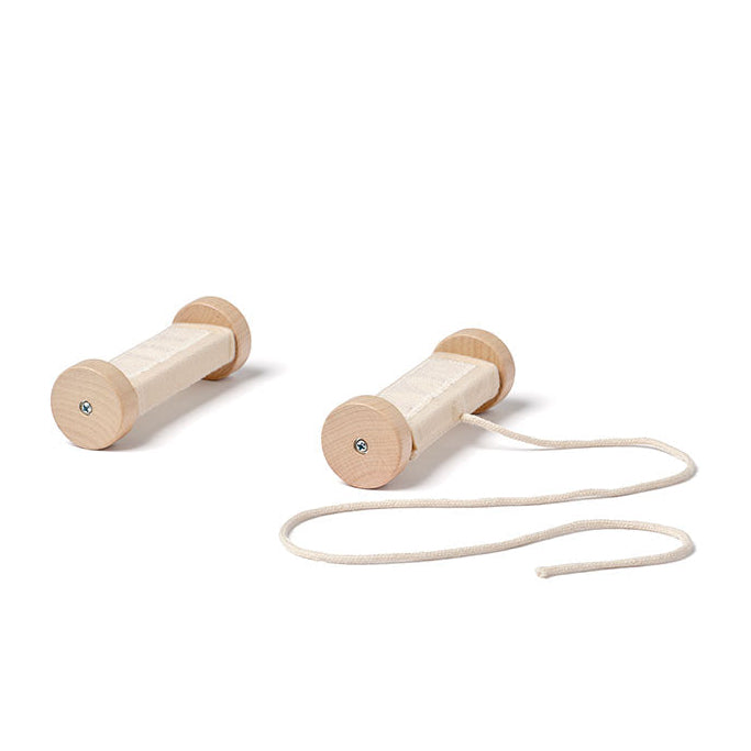 De wieltjes zijn afneembaar waardoor Sam ook omgebouwd kan worden tot zachte knuffel. In dit geval is Sam ook geschikt voor kindjes onder de 1 jaar. Met het touwtje kun je hem sturen terwijl hij over de vloer rolt. Perfect om tijdens het spelen je coördinatie te oefenen. Het doosje is zijn stal.