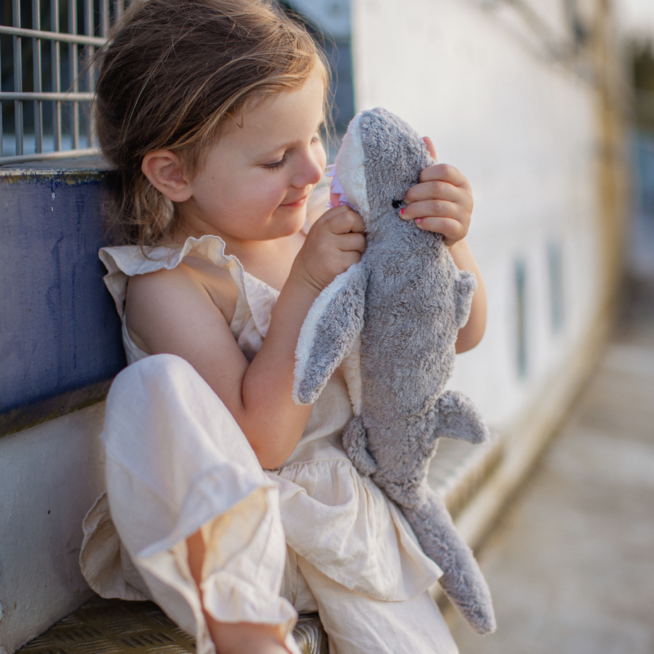 Kleine warmteknuffel haai van Senger Naturwelt, een zachte knuffel voor jouw dreumes of kleuter of jezelf veilig om te gebruiken vanaf 2 maanden, veilig om mee te knuffelen, te slapen, te spelen en zelfs om in de mond te steken.