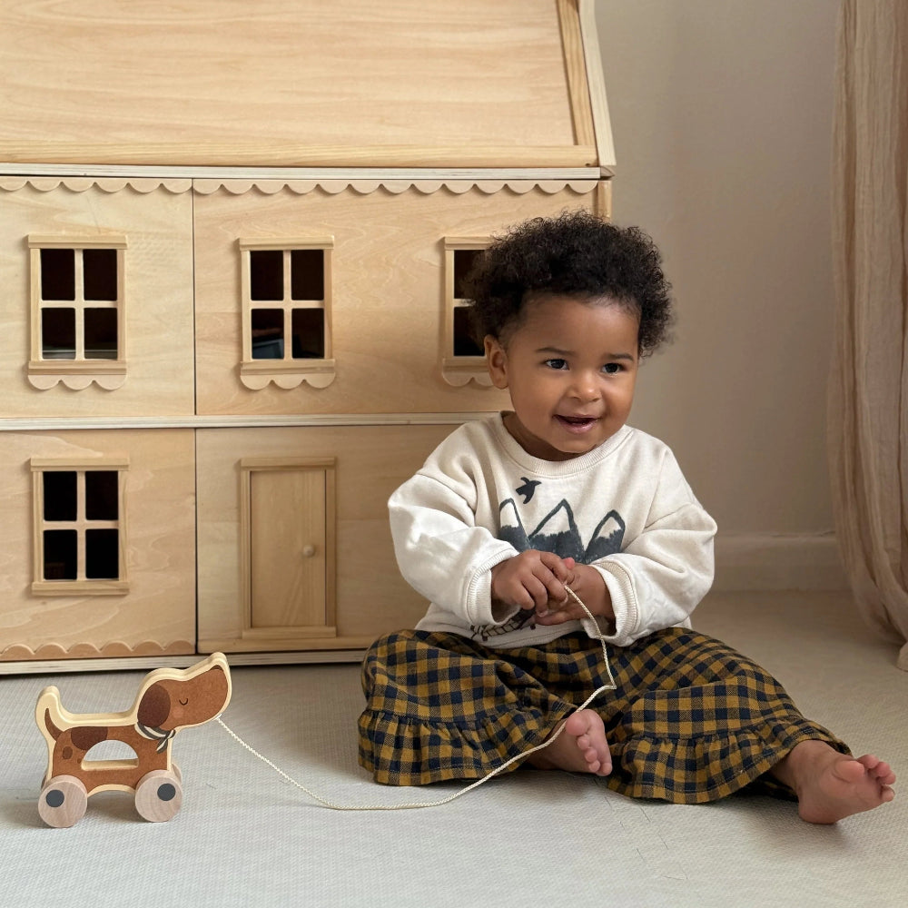 Houten trekfiguur hondje Poppy van Mrs Ertha, een schattige puppy die overal mee naartoe rolt.... Lees meer