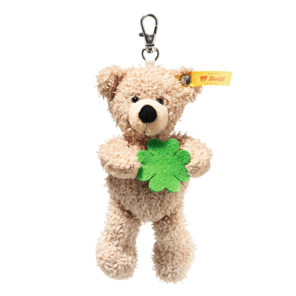 Steiff sleutelhanger Fynn is een super zacht knuffelbeertje in de kleur beige. Deze kleine knuffelbeer heeft een klavertje vier in zijn handjes waardoor hij geluk brengt. Maak Fynn vast aan de fietssleutel van je kindje zodat deze gemakkelijk terug te vinden is in de schooltas.