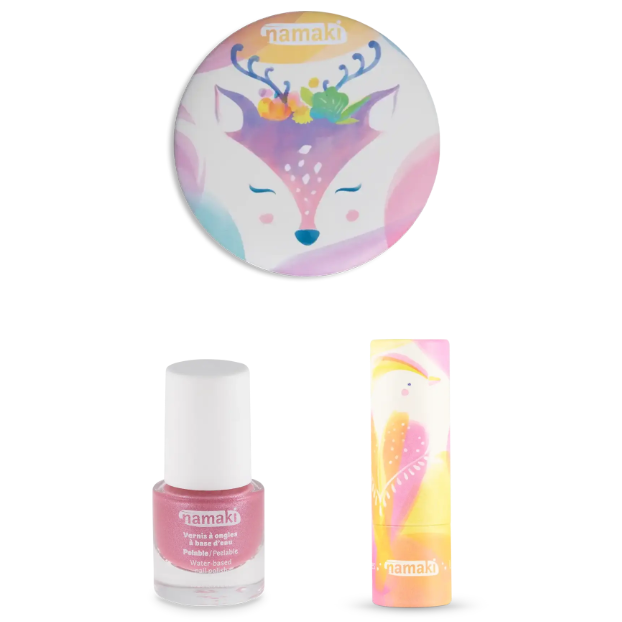 De Namaki mini set mees is een drie-in-één cadeauset voor een creatieve make-up ervaring. Verwen je kindje of iemand anders met deze schattige giftset.