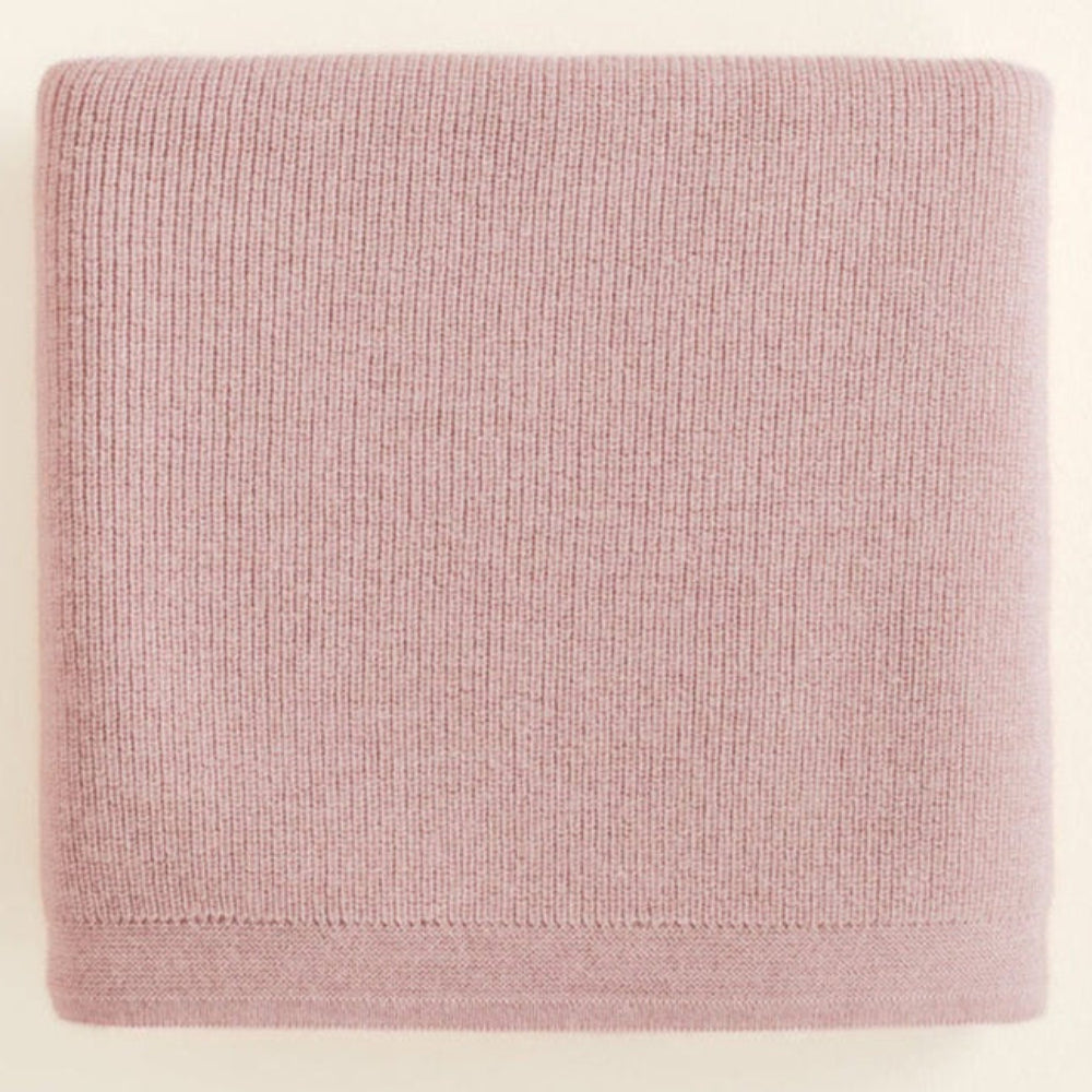 HVID deken Felix is gebreid in een soepele patent steek knit, de roze deken is zacht en warm en gemaakt van 100% merino wol. De deken heeft een prachtige ribbel rand met een glad boordje.