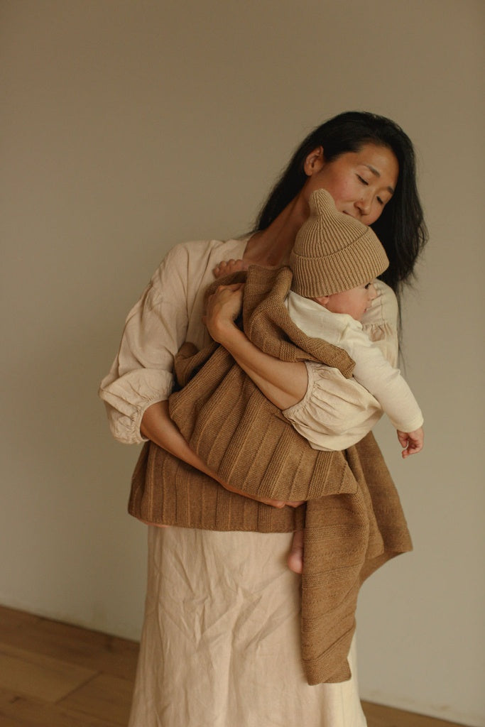 HVID deken Holly is gebreid in een fantasie rib knit, de dikke walnoot kleurige deken is zacht en warm en gemaakt van 100% merino wol en houd je baby warm tijdens de koude winterdagen.