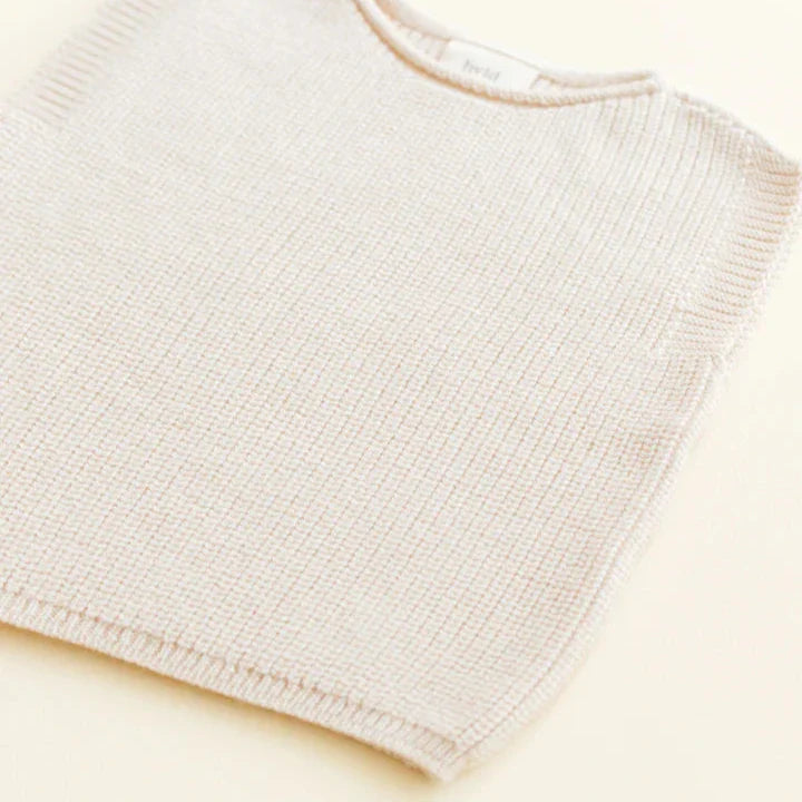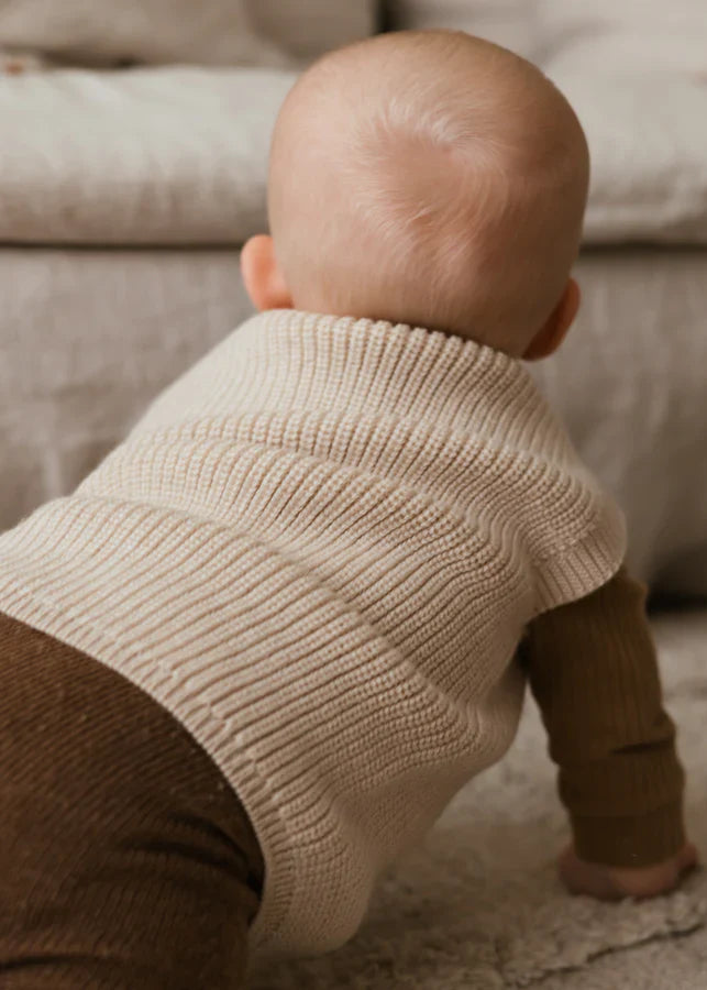 Spencer Harvey houdt kleintje lekker warm, het wollen cream vest is naadloos in één stuk gebreid, wat het erg comfortabel maakt voor kindjes.