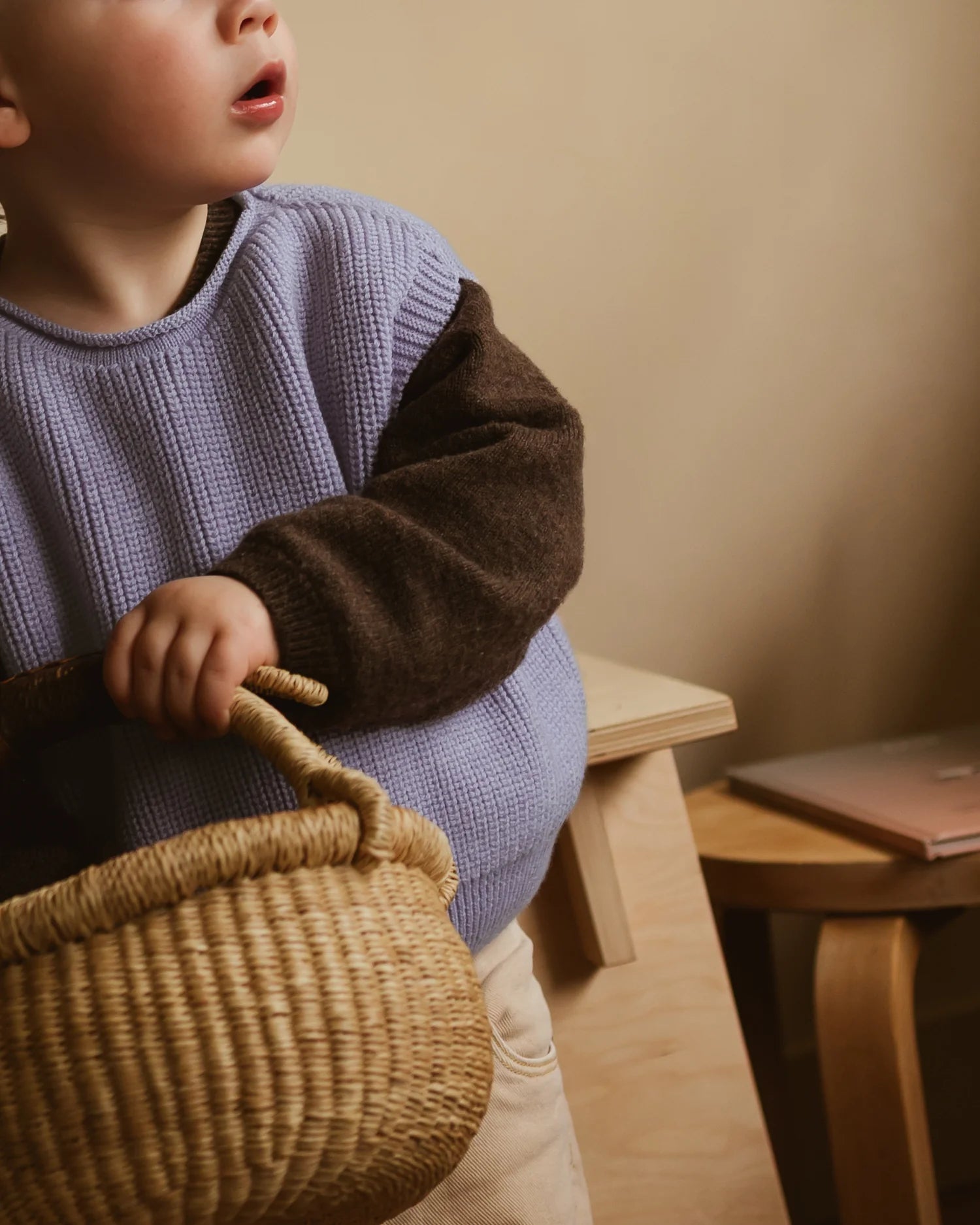 Spencer Harvey houdt kleintje lekker warm, het wollen lila vest is naadloos in één stuk gebreid, wat het erg comfortabel maakt voor kindjes.