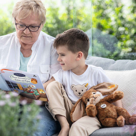 Een super zacht Steiff konijntje in een bruine kleur. Deze fijne knuffel heeft een vrolijk... Lees meer